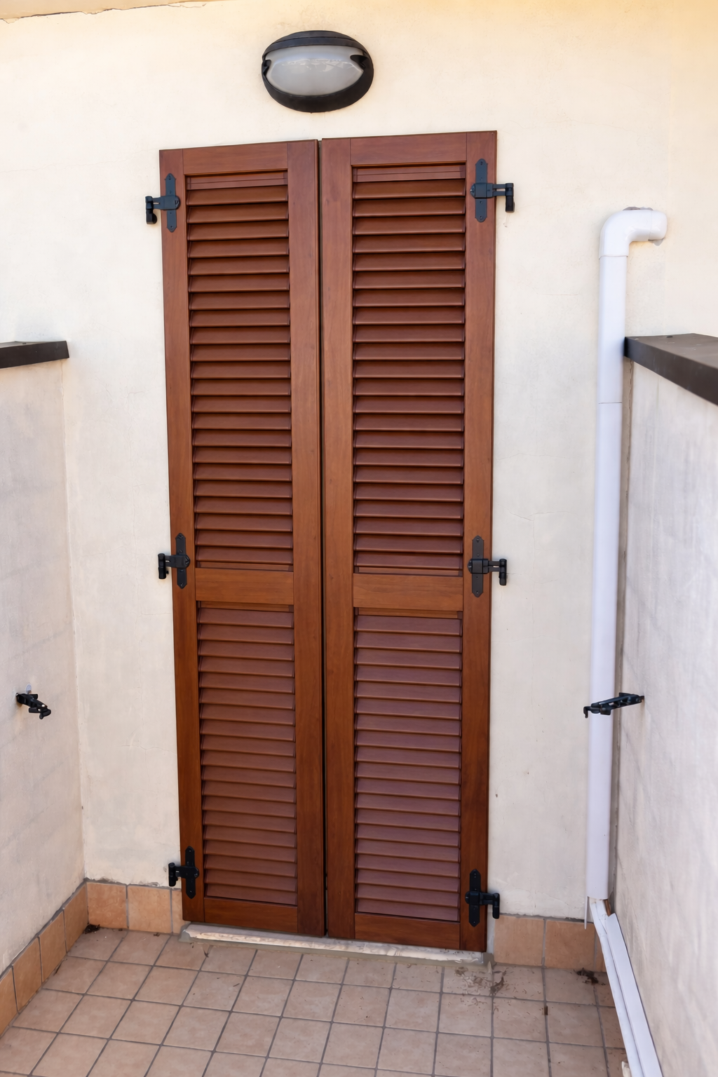 Sostituzione persiane in legno con nuove persiane con trattamento e verniciatura protettiva ad alta resistenza.