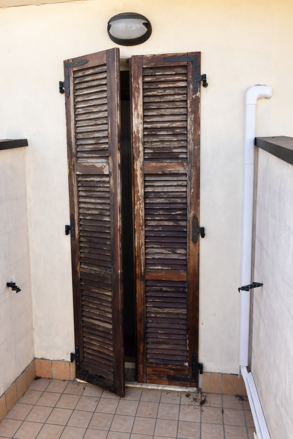 Sostituzione persiane in legno con nuove persiane con trattamento e verniciatura protettiva ad alta resistenza.